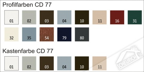 Farben und Optik Aluminium-Profil CD77 für Alulux Resident: