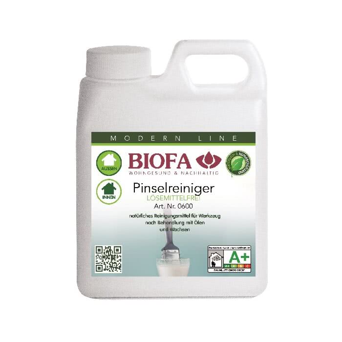 Der BIOFA Pinselreiniger 0600 ist ein natürliches, lösemittelfreies und biologisch abbaubares Reinigungsmittel zum Säubern von Pinseln, Farbrollern, Farbwalzen, Malerwerkzeugen, Lackierwerkzeugen etc.