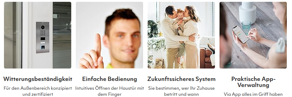 - Komfortabler Zutritt mittels Fingerprint durch intuitive Touchbedienung (auch für Kinder ab 6 Jahren) und Push-Benachrichtigung, um zu wissen wer nach Hause kommt - Zutrittssystem inkludiert 20 Benutzer, auf bis zu 100 Benutzer erweiterbar