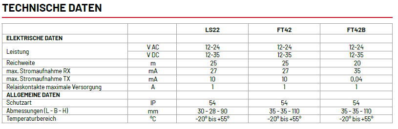 LS22 Lichtschrankenpaar für Verwendung im Außenbereich, in Säulen CH-51N und CH-101N einbaubar