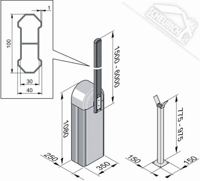 - Schrankenbaumlänge 6m mit Rechteckprofil